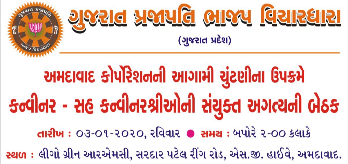 ગુજરાત પ્રજાપતિ ભાજપ વિચારધારા, અમદાવાદ, મ્યુનિસિપલ કોર્પોરેશનની ચૂંટણી, અગત્યની બેઠક, ૦૩.૦૧.૨૦૨૧, Gujarat Prajapati Bhajap Vichardhara, Ahmedabad, Important meeting, upcoming elections of Ahmedabad Municipal Corporation, Councilor election, amc, Ahmedabad, ઓનલાઇન ગુજરાત ન્યુઝ, રિપોર્ટર કૌશિક પરમાર, કૌશિક પરમાર, online Gujarat news, reporter Kaushik Parmar, Kaushik Parmar, reporter kaushik