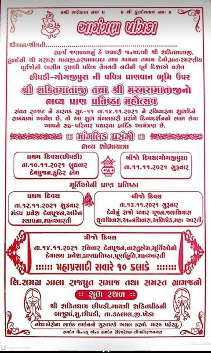 Shaktidham Chhipdi, Chhipdi, Gogjipura, Shakti Mataji Mandir Chhipdi, Kathlal, Kheda, Pran Pratishtha, Marmara Mataji