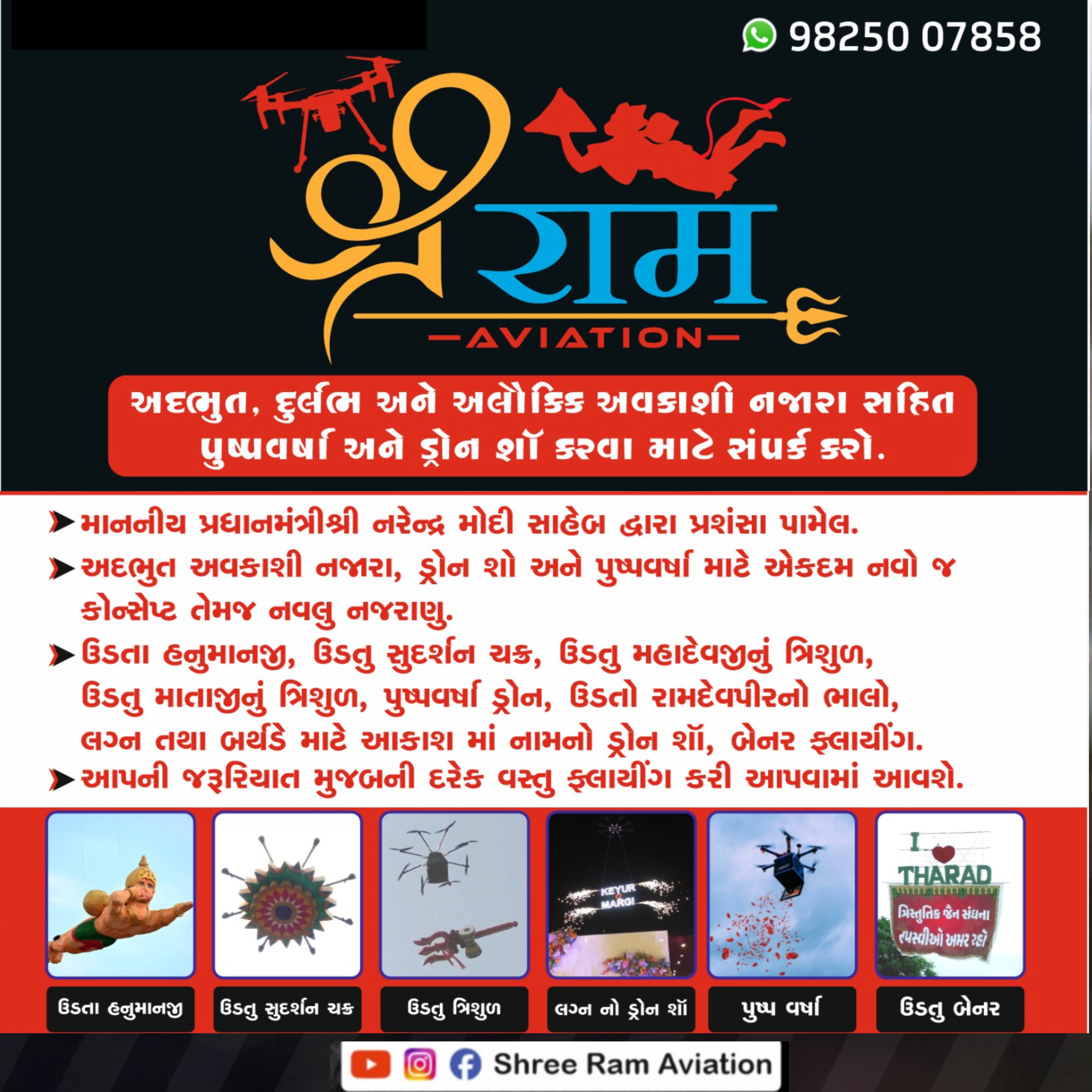 Hanuman Drone, Trishul Drone, Sudarshan Chakra Drone, Bhala Drone, Goga Maharaj Drone, Flag Hosting Drone, Flower Dropping Drone, Pushpvarsha Drone, photo Drone, banner drone, flower Drone, LED Drone, flag drone, name drone, India flag drone, Shree Ram aviation, Drone, Drones, 9825007858, HanumanJi phone, Air drone, pavanputra drone, dhwaja drone, dhaja Drone,